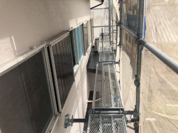 窓や基礎など、外壁以外の所に塗料がつかないように養生をした後、