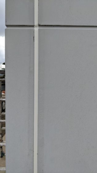 目地のコーキングは打ち替え、窓枠のコーキングは増し打ちで補修しました。