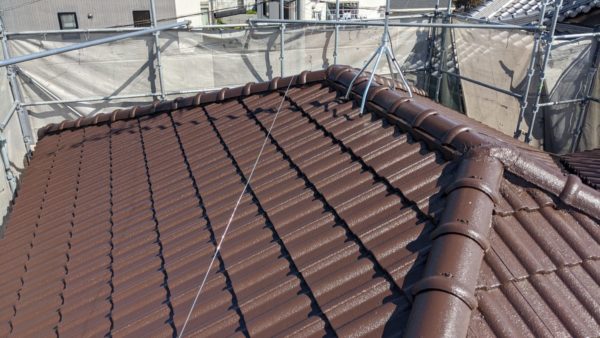 1回目は瓦が塗料を吸い込んだ為、塗膜も薄く、艶もほとんど出ていませんでした。