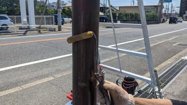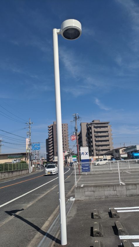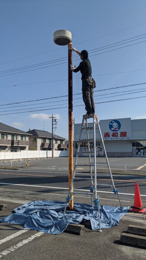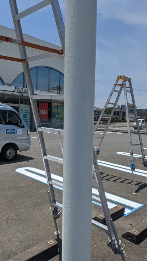 先日、愛眼 加古川別府店様から外灯塗装と駐車場のライン補修の依頼を頂き、