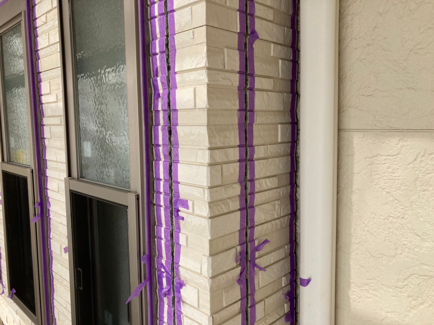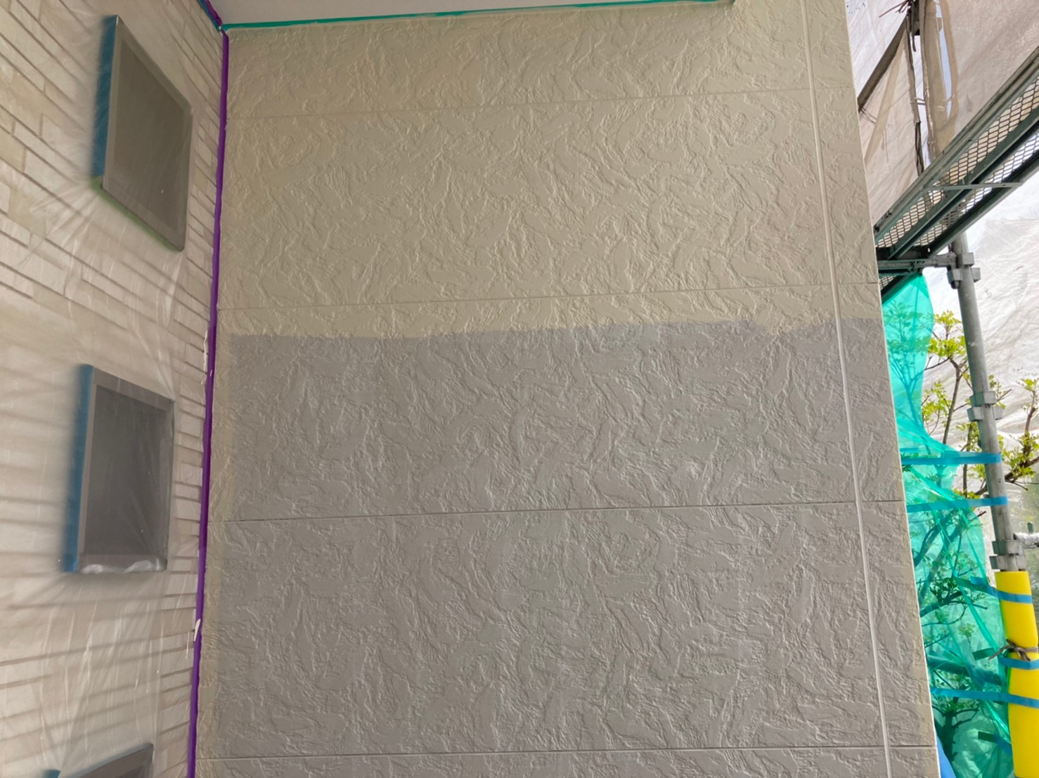 ▽帯塗装&タイル調サイディングボードのクリヤー塗装